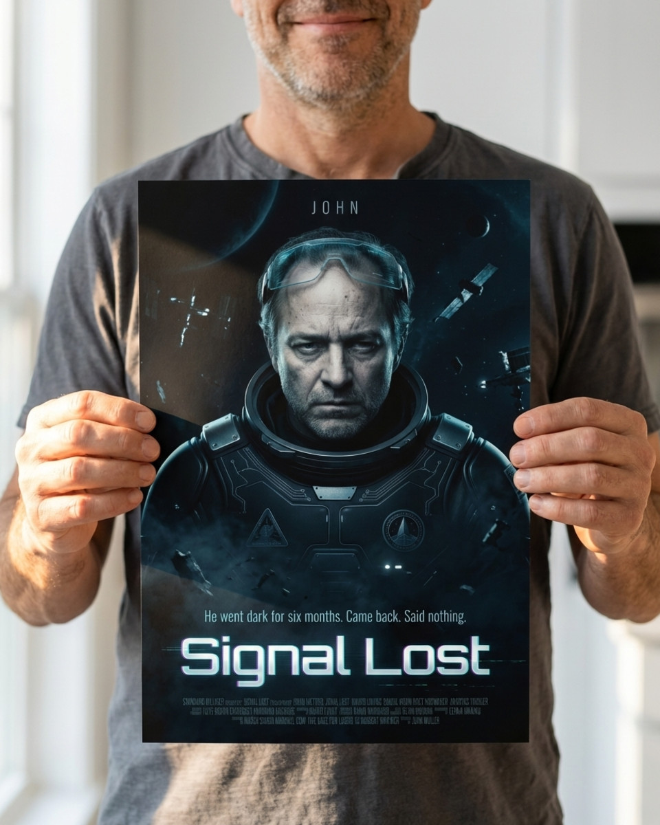 Step into another galaxy. A sci-fi movie poster with a real hero on it.